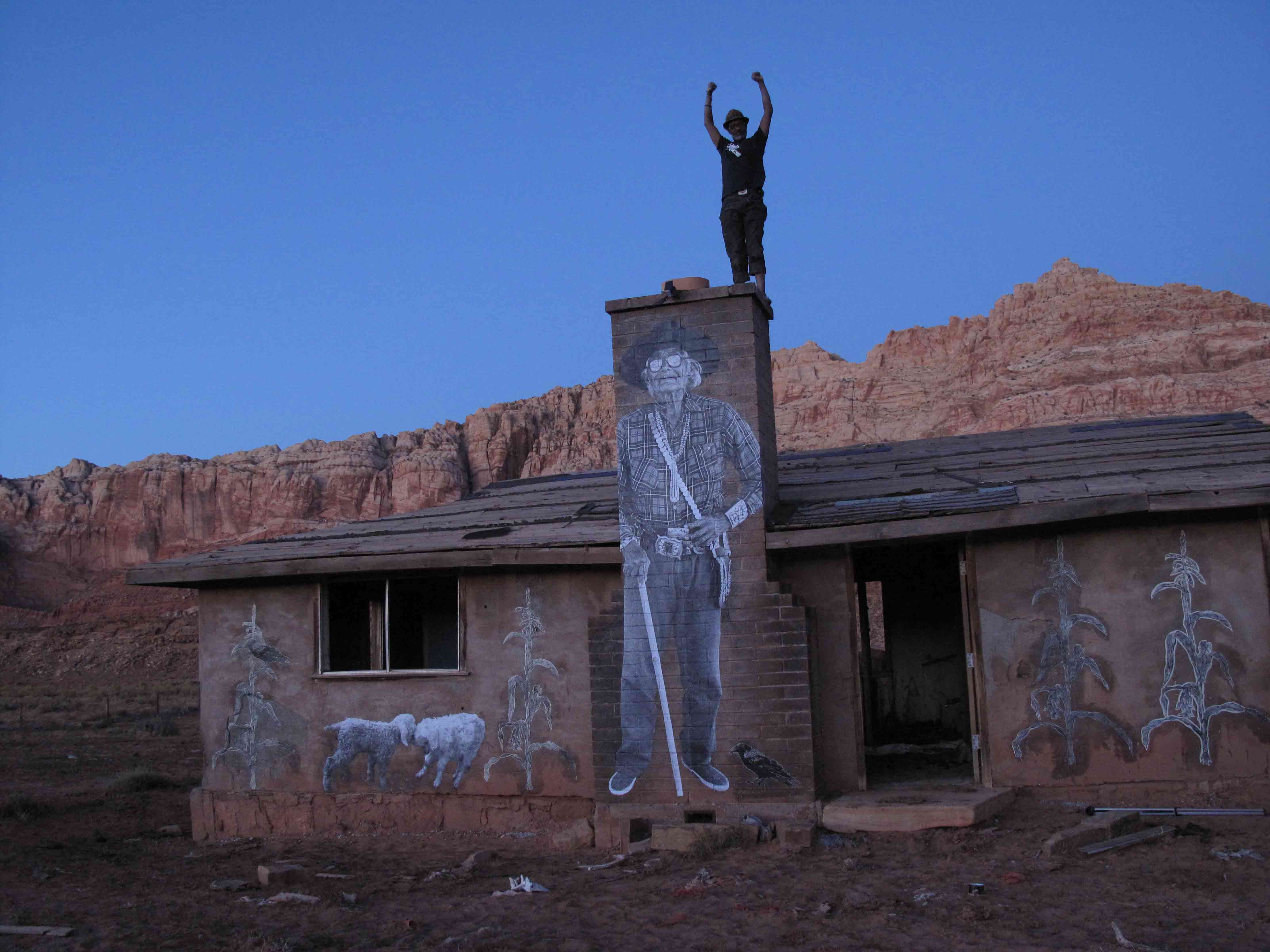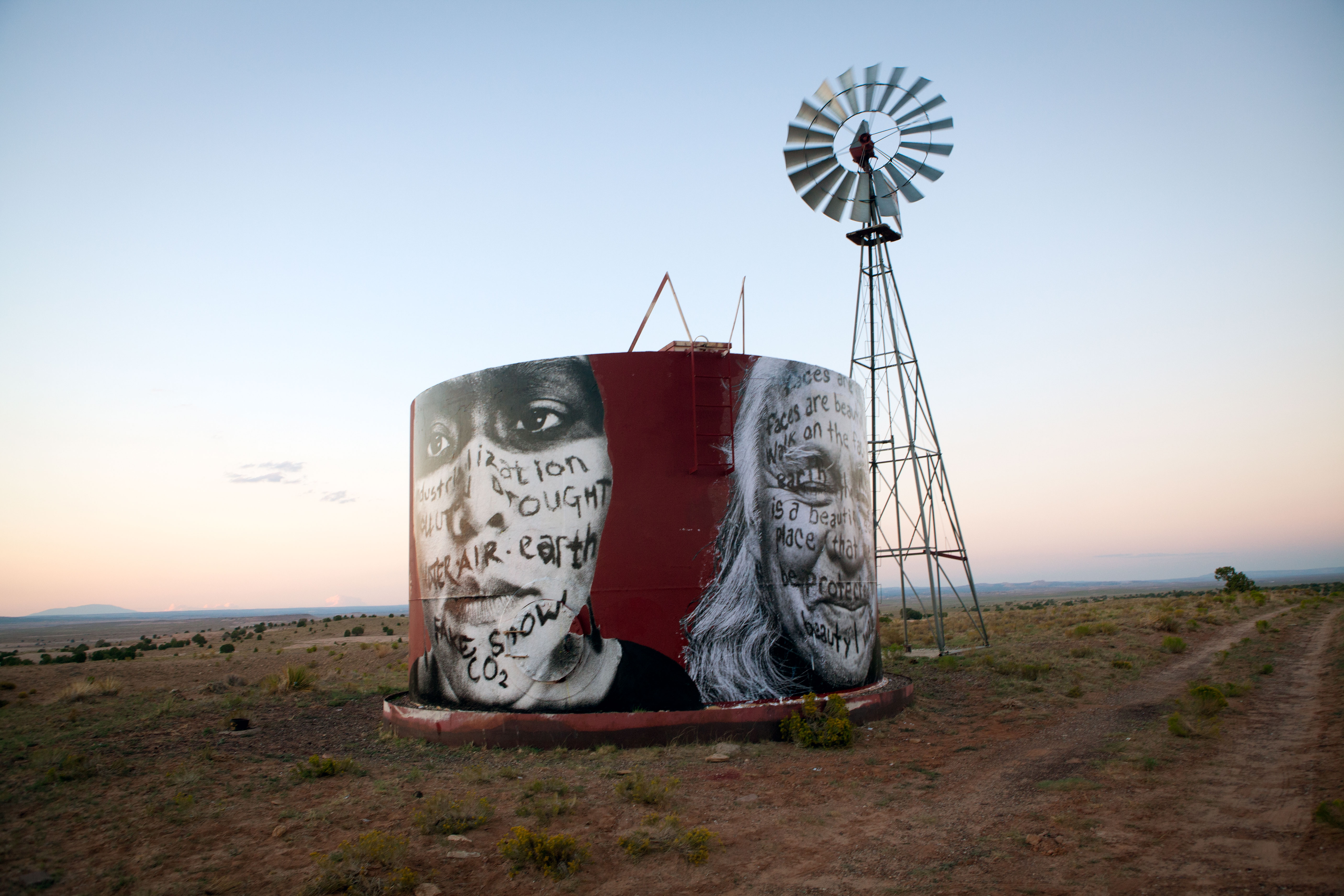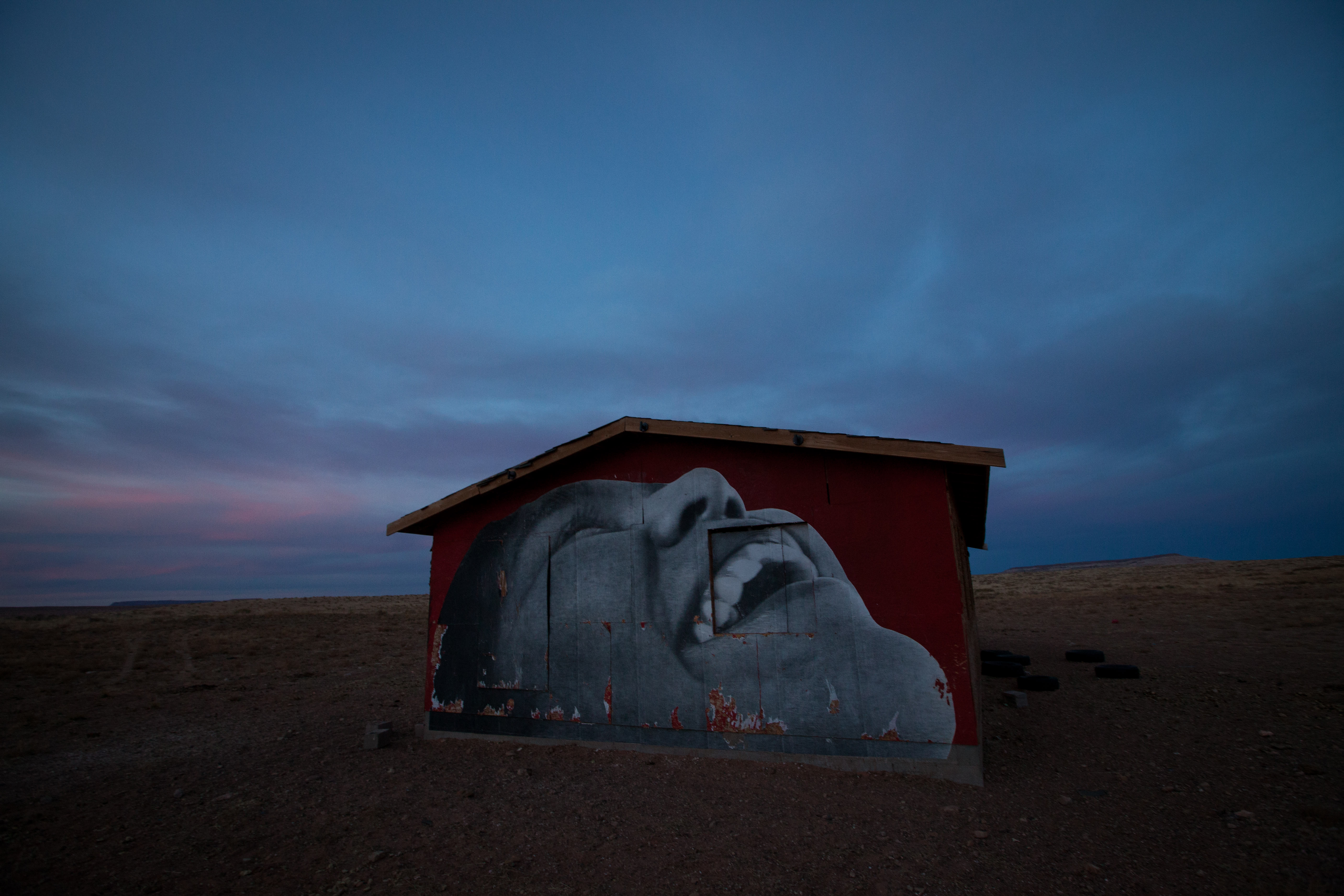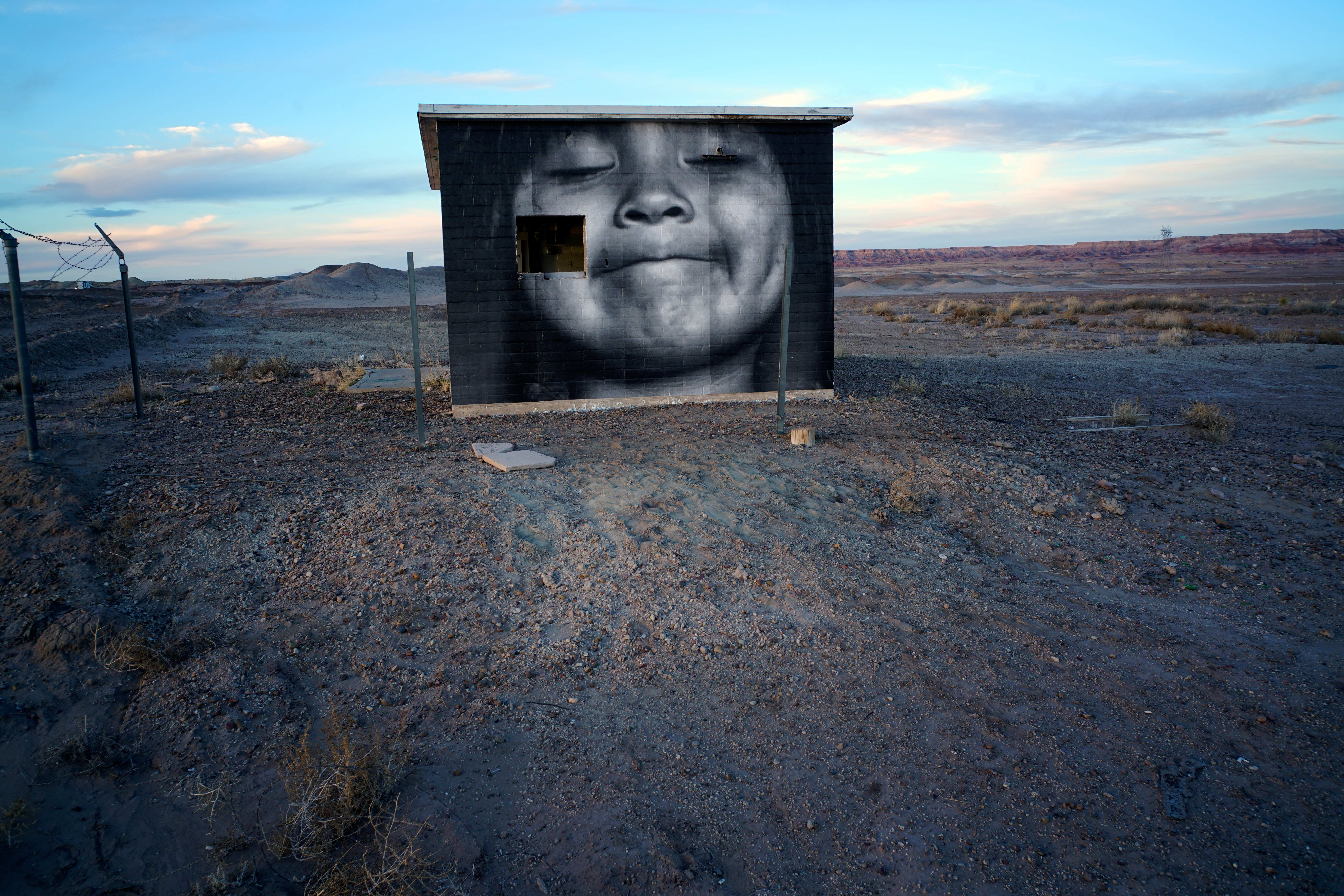 Having fallen into a state of disrepair on a highway heavily used by motorists from the Navajo nation and around the world the Painted Desert Project invited Phoenix based artist Thomas “Breeze” Marcus to assemble a crew of artists to envision the space differently.