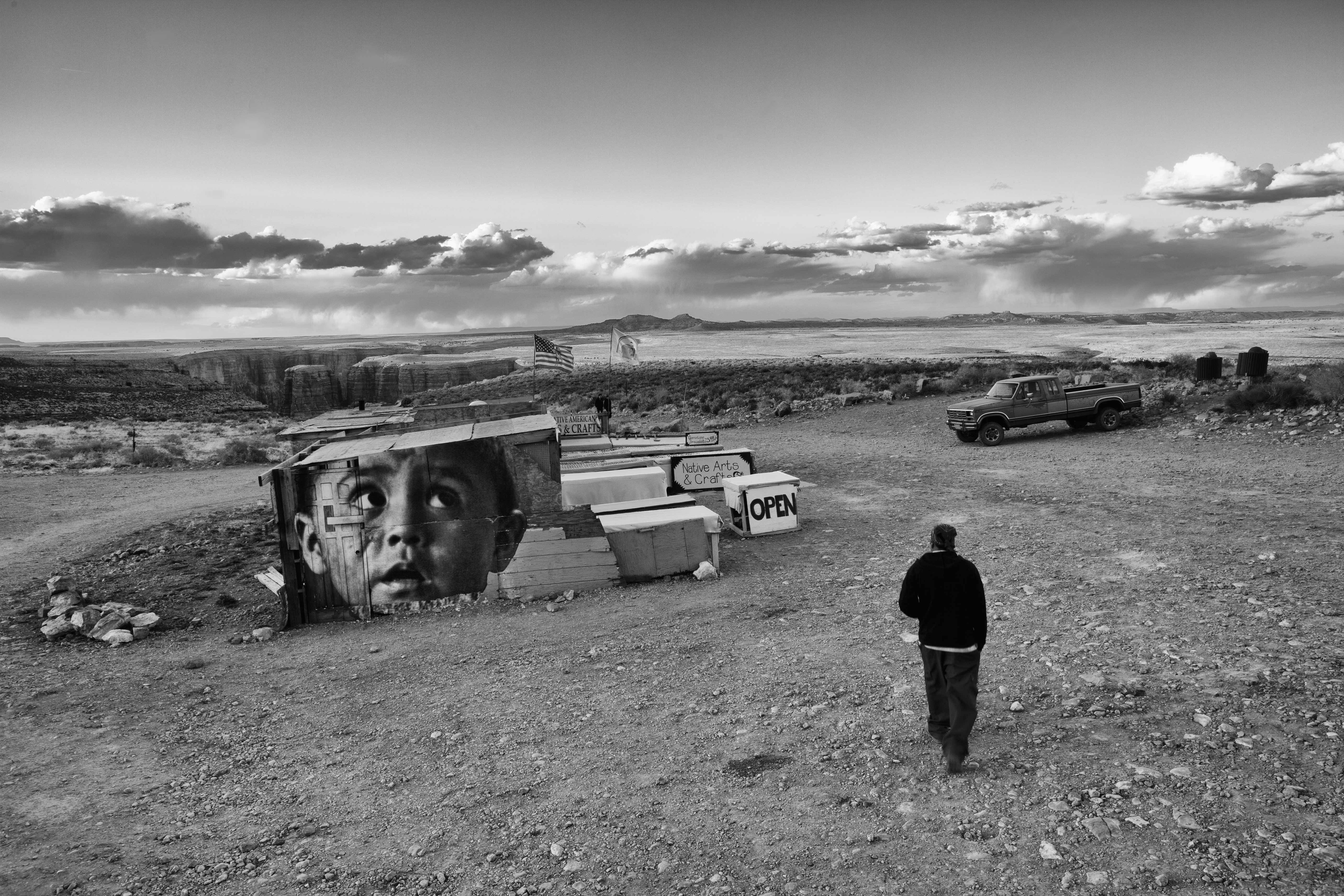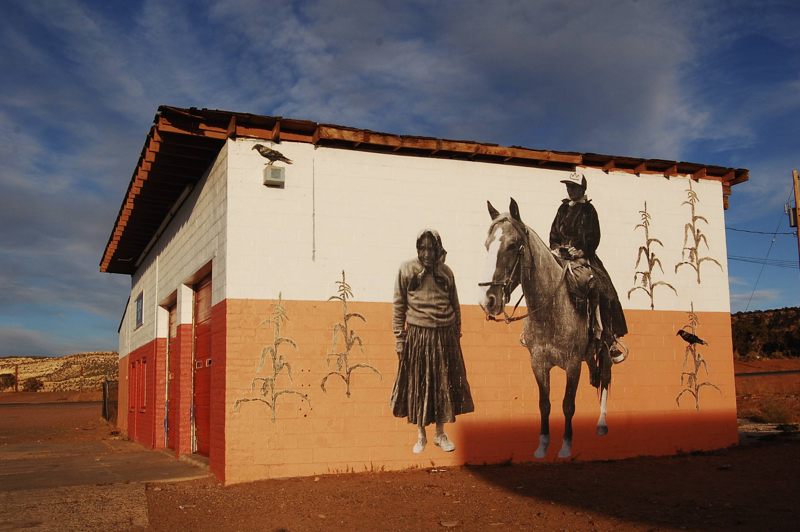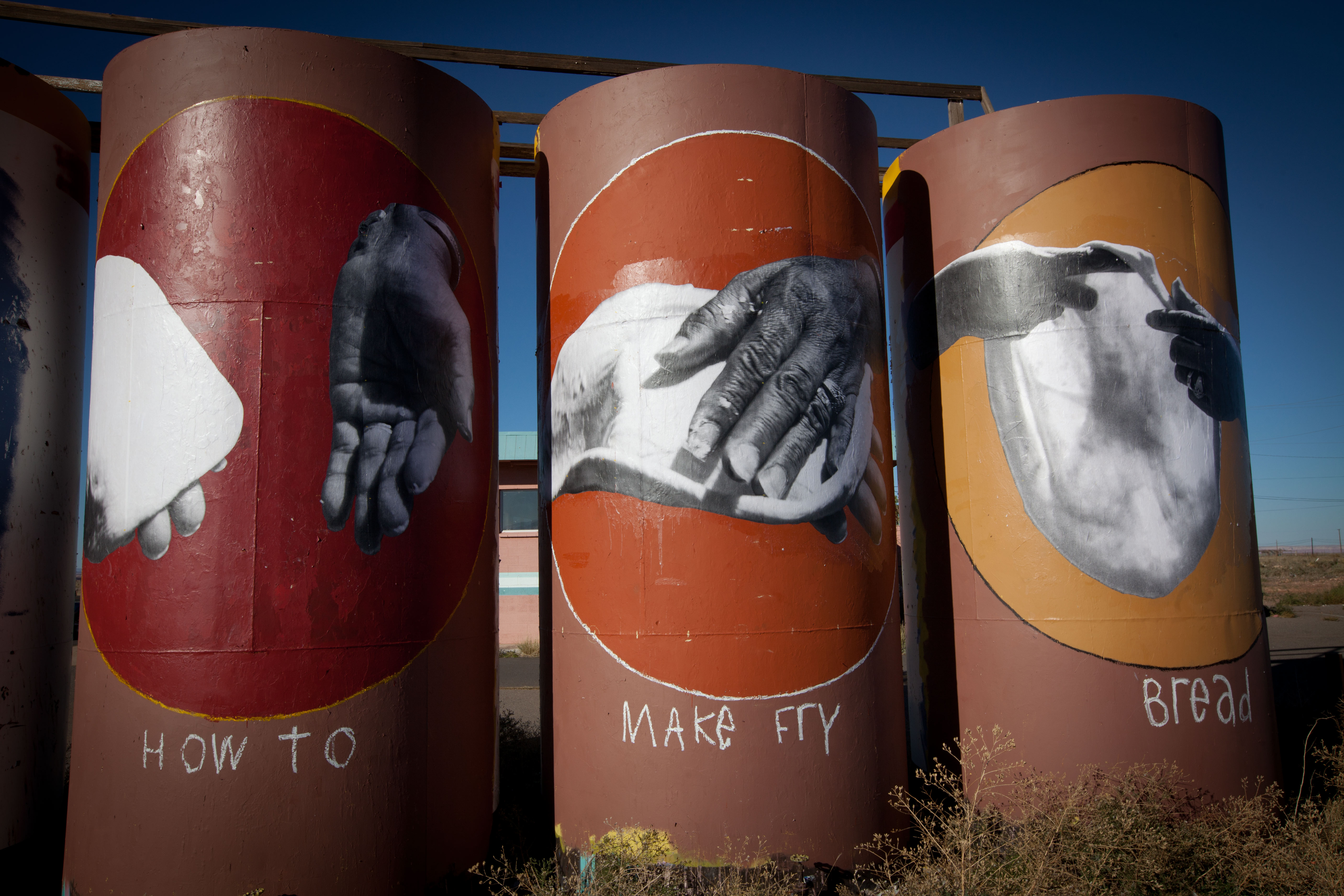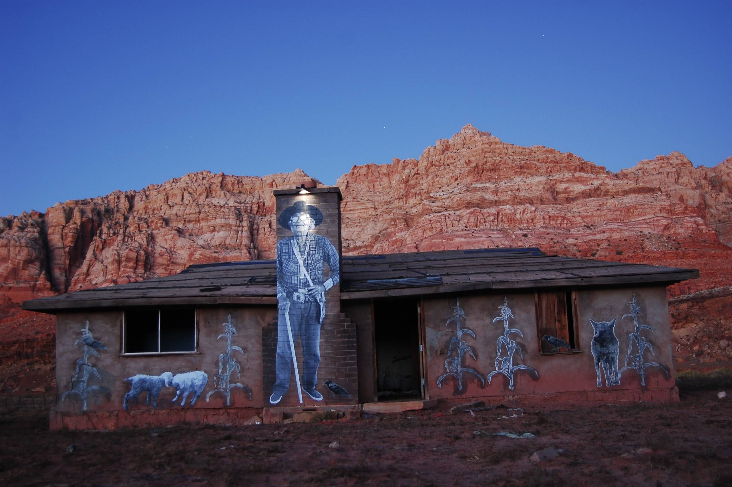 Having fallen into a state of disrepair on a highway heavily used by motorists from the Navajo nation and around the world the Painted Desert Project invited Phoenix based artist Thomas “Breeze” Marcus to assemble a crew of artists to envision the space differently.