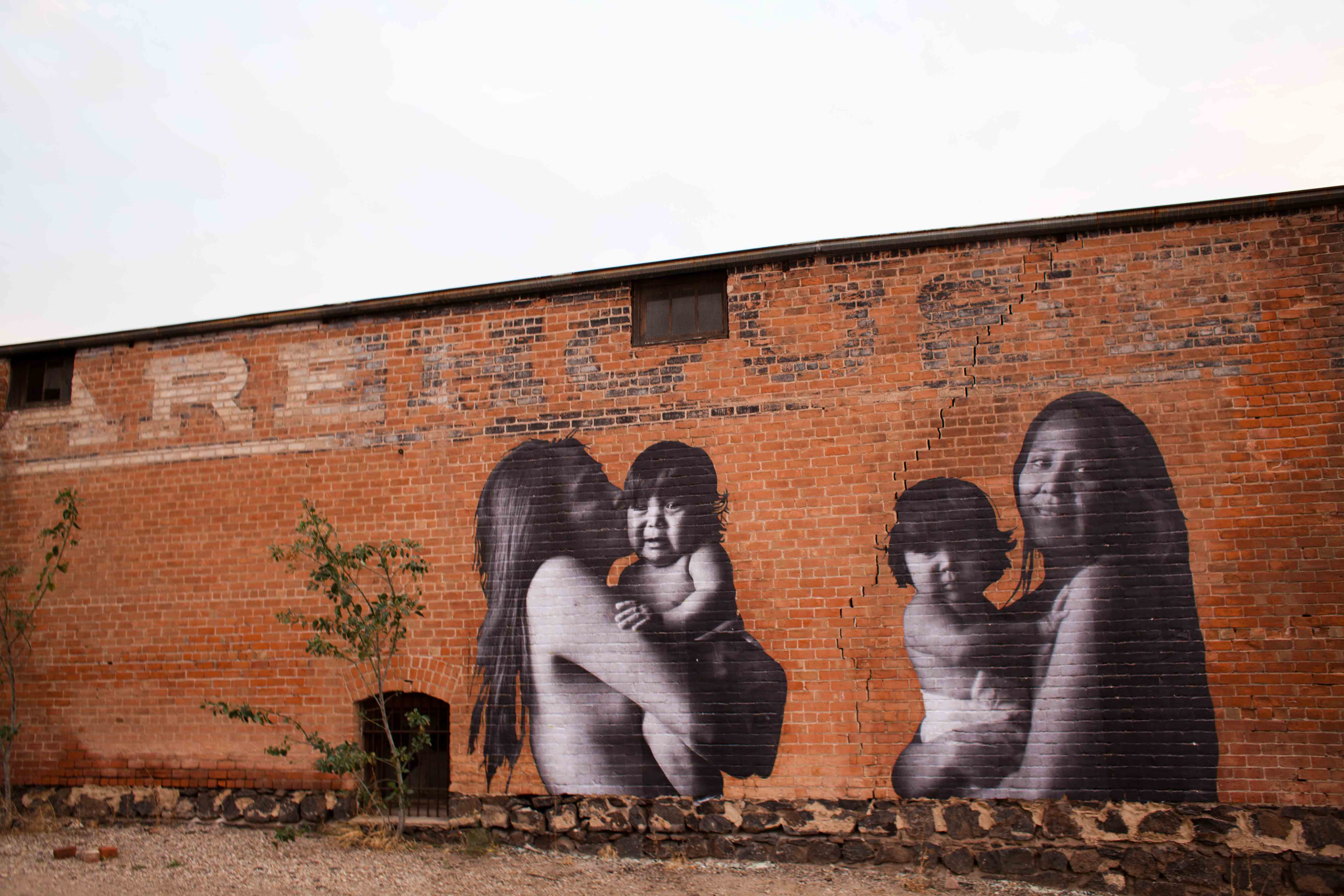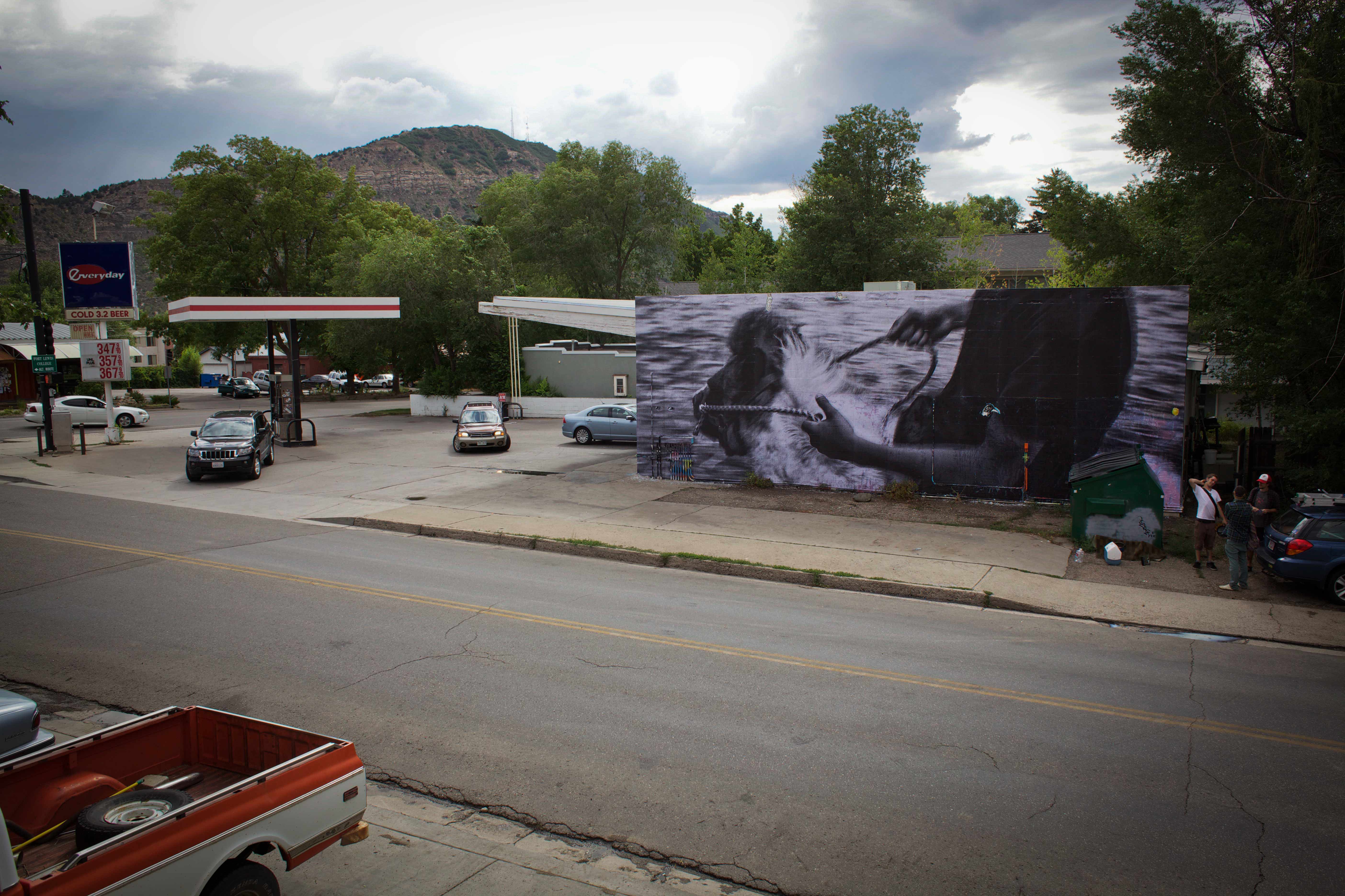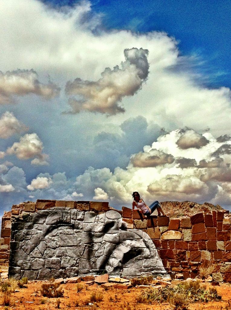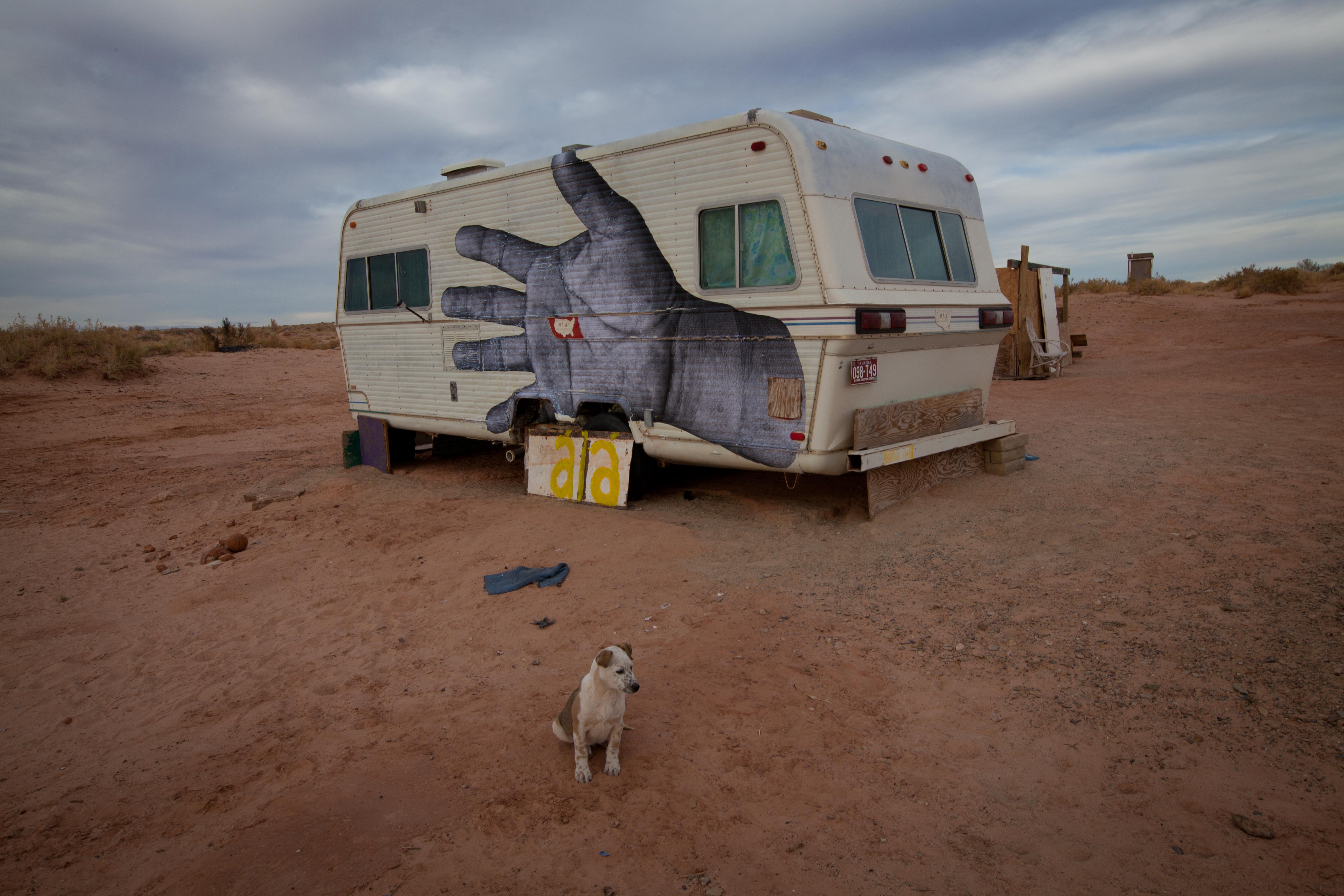Having fallen into a state of disrepair on a highway heavily used by motorists from the Navajo nation and around the world the Painted Desert Project invited Phoenix based artist Thomas “Breeze” Marcus to assemble a crew of artists to envision the space differently.